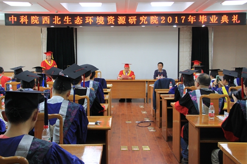 6月9日,中國(guó)科學(xué)院西北生態(tài)環(huán)境資源研究院(籌)(簡(jiǎn)稱(chēng)西北研究院)2017年研究生畢業(yè)典禮隆重舉行。西北研究院黨委書(shū)記、副院長(zhǎng)謝銘,學(xué)位評(píng)定委員會(huì)主席、常務(wù)副院長(zhǎng)賴(lài)遠(yuǎn)明院士,副院長(zhǎng)馮起研究員,油氣中心主任夏燕青研究員,學(xué)位評(píng)定委員會(huì)委員代表,導(dǎo)師代表及2017屆畢業(yè)生近百人齊聚一堂見(jiàn)證莊嚴(yán)的時(shí)刻。典禮由馮起主持。