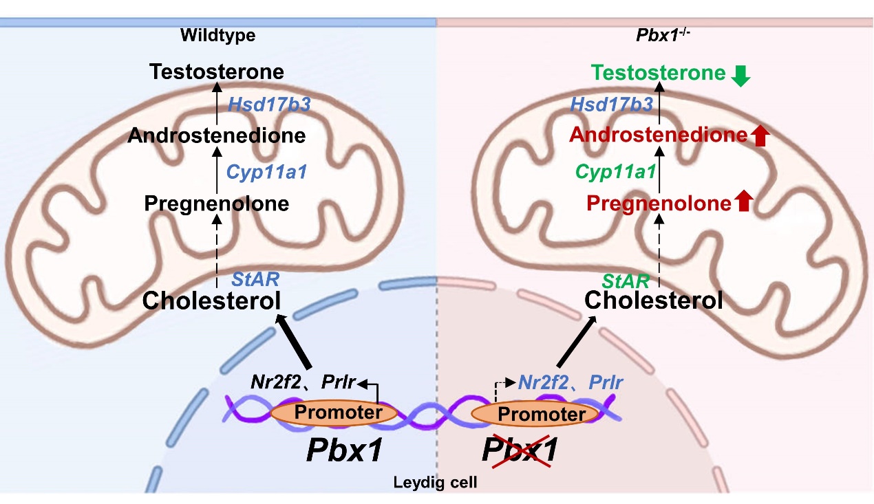 論文模式圖:轉(zhuǎn)錄因子PBX1在間質(zhì)細(xì)胞發(fā)育和睪酮分泌中發(fā)揮關(guān)鍵作用