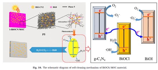 近日,中國科學院青海鹽湖研究所鎂質(zhì)膠凝材料科研團隊成功研發(fā)出一種新型光催化水泥基復合材料,通過高溫煅燒與微波輔助溶劑熱法合成 g-C?N?/BiOCl?.?I?.?復合光催化劑(BiO-CN2),并創(chuàng)新性地將其與氯氧鎂水泥(MOC)復合,成功制備出高性能BiOCN/MOC光催化復合材料。該技術(shù)有效解決傳統(tǒng)光催化劑可見光響應弱、電荷載流子復合快的痛點,同時顯著提升基體性能:4%催化劑摻量下,復合材料28天抗壓強度較純MOC提升20.99%,對RhB染料展現(xiàn)出高效吸附-化學協(xié)同降解能力,自清潔性能與結(jié)構(gòu)穩(wěn)定性同步優(yōu)化。此研究為光催化水泥基材料的性能突破提供了創(chuàng)新技術(shù)路徑,為建筑領(lǐng)域綠色環(huán)保功能材料的規(guī)?;瘧玫於岁P(guān)鍵基礎(chǔ)。