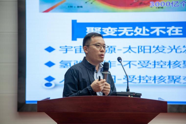 中國科學(xué)院院士、中國核學(xué)會副理事長、近代物理所趙紅衛(wèi)研究員在蘭州一中作題為《重離子加速器大科學(xué)裝置----探索未知、貢獻(xiàn)社會》的報(bào)告,介紹核科學(xué)前沿進(jìn)展以及大科學(xué)裝置在科學(xué)研究和社會發(fā)展中的重要作用。核工業(yè)西南物理研究院院長助理、聚變科學(xué)所所長、中國“環(huán)流三號”總設(shè)計(jì)師鐘武律研究員在西北師范大學(xué)附屬中學(xué)作題為《托起明天的太陽》的報(bào)告,分享了聚變等離子體物理研究與技術(shù)研發(fā)方面取得的創(chuàng)新性成果與技術(shù)突破。中國原子能科學(xué)研究院物理所張英遜研究員在蘭州市第五十一中學(xué)作題為《撕裂原子核-認(rèn)識宇宙中物質(zhì)和能量源泉》的報(bào)告,帶領(lǐng)現(xiàn)場師生走進(jìn)理解宇宙起源與演化的世界。每場報(bào)告后均設(shè)置了互動問答環(huán)節(jié),學(xué)生們積極提問,與科學(xué)家進(jìn)行深入交流,現(xiàn)場氣氛熱烈。