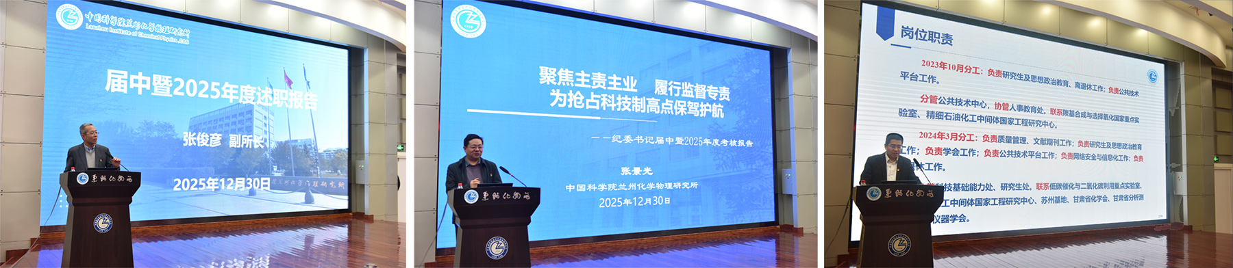 蘭州化物所副所長張俊彥、紀委書記張景光、副所長石峰分別就各自分管工作作了述職報告。