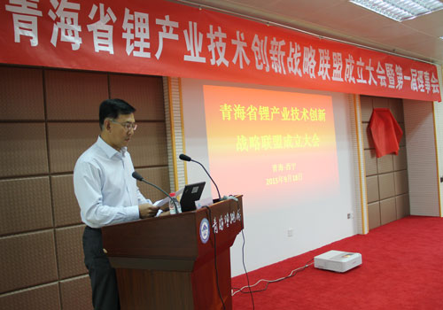 青海省鋰產(chǎn)業(yè)技術(shù)創(chuàng)新戰(zhàn)略聯(lián)盟成立大會上,青海鹽湖所主持工作的副所長段東平代表鋰聯(lián)盟籌備組匯報(bào)了聯(lián)盟成立背景及籌備工作情況,青海省科技廳副廳長張超遠(yuǎn)宣讀了成立青海省鋰產(chǎn)業(yè)技術(shù)創(chuàng)新戰(zhàn)略聯(lián)盟的文件,并與青海省質(zhì)量技術(shù)監(jiān)督局副局長王穎鳴共同為青海省鋰產(chǎn)業(yè)技術(shù)創(chuàng)新戰(zhàn)略聯(lián)盟揭牌。