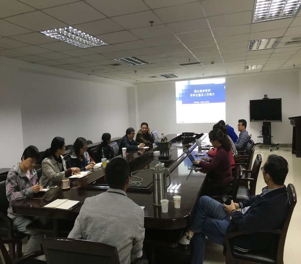 駱永明強(qiáng)調(diào)了文獻(xiàn)情報(bào)信息在科研過程中的重要性,并結(jié)合自身科研工作和海岸帶研究所的發(fā)展進(jìn)行了闡述。他肯定了由蘭州文獻(xiàn)中心學(xué)科館員與煙臺(tái)海岸帶所圖書館員共同完成的《煙臺(tái)海岸帶所近五年發(fā)文及對(duì)比機(jī)構(gòu)分析》在研究所“十二五”評(píng)估匯報(bào)中發(fā)揮了重要支撐作用,并對(duì)蘭州文獻(xiàn)中心多年來對(duì)煙臺(tái)海岸帶研究所的文獻(xiàn)情報(bào)工作支撐表示感謝。在談及研究所“十三五”期間對(duì)文獻(xiàn)情報(bào)工作的需求時(shí),駱永明提出結(jié)合研究所開展的國際研究計(jì)劃和即將召開的學(xué)術(shù)會(huì)議開展學(xué)科情報(bào)服務(wù)的合作研究,并對(duì)知識(shí)產(chǎn)權(quán)分析、科研團(tuán)隊(duì)信息環(huán)境建設(shè)以及面向院重點(diǎn)實(shí)驗(yàn)室的評(píng)價(jià)等工作提出了服務(wù)需求。他最后建議蘭州文獻(xiàn)中心要結(jié)合多年來的數(shù)據(jù)庫分析工作,開展對(duì)中文學(xué)術(shù)論文的影響力研究,探索公證客觀的評(píng)價(jià)方法。