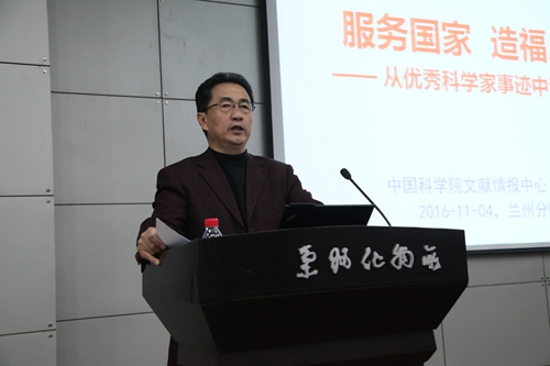 11月9日上午,中國科學院蘭州分院系統(tǒng)召開“兩學一做”學習教育第四專題“學宗旨,創(chuàng)新科技為民”學習會,邀請中國科學院文獻情報中心黨委書記兼副主任何林作了題為《服務國家,造福人民——從優(yōu)秀科學家事跡中汲取營養(yǎng)》的主題報告,蘭州地區(qū)院屬各單位領導,黨委、紀委委員、黨建部門負責人、黨支部書記、支部委員和黨員代表,以及分院機關在職全體黨員,分院直屬單位負責人、黨支部書記,離退休黨支部(總支)書記等近200人參加學習,學習報告會由蘭州分院分黨組書記謝銘主持。